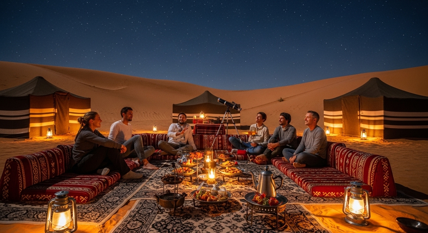 After dark, relax under the stars and enjoy a delicious barbecue dinner with soft drinks. Watch traditional dance shows and listen to local music in a warm desert atmosphere.